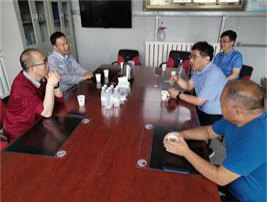 在礦山臨建生活區(qū)檢查過程中,郭總與業(yè)主山西國金電力有限公司董事長、總經(jīng)理頡鈺進行友好的暢談,隨后郭總受頡鈺董事長邀請來到山西國金電力有限公司總部大樓,興致勃勃的參觀了正在使用世界首臺350MW超臨界循環(huán)流發(fā)電機組模型。