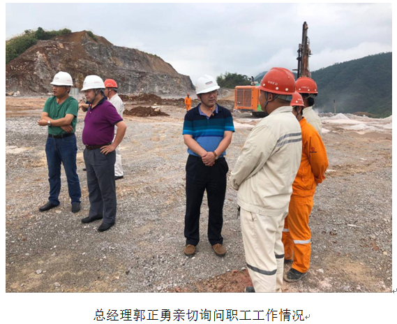 檢查過程中,郭正勇總經理關切地詢問了現場員工,問道:工作中遇到過什么問題?對公司的現場施工管理有什么要求?在現場工作中學到那些關鍵技術知識?等等,熱切鼓勵年輕員工要不忘初心,擼起袖子加油干,牢記使命,攜手共創公司美好的明天。要始終堅持“干一項工程、樹一塊牌子、交一批朋友、贏一方信譽”的經營理念,堅持“安全礦山、綠色礦山、顧客至上、跟蹤服務”的服務理念,打造出中材礦山一流的企業品牌。