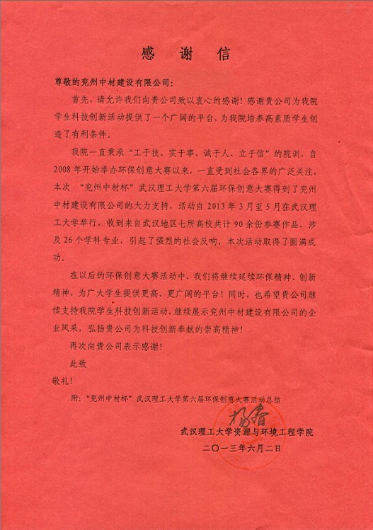 來自武漢理工大學(xué)的感謝信