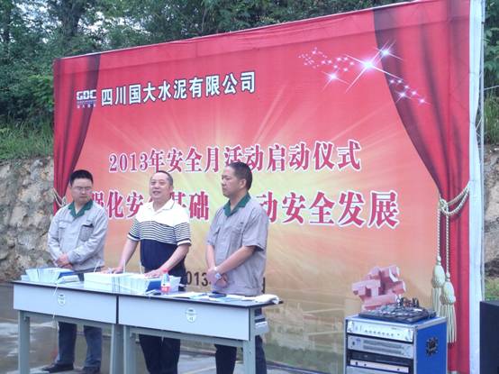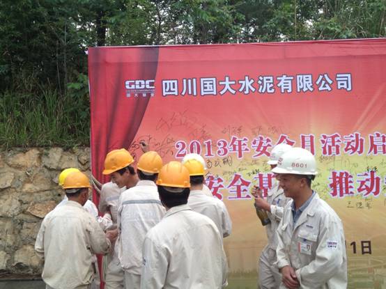 四川國大水泥舉行安全月啟動儀式 6月1日,四川國大水泥有限公司舉行了以“強化安全基礎(chǔ),推動安全發(fā)展”為主題的安全月啟動儀式。江油市含增鎮(zhèn)安辦主任唐開文到會并講話。會議由國大副總鐘義主持,兗州中材國大礦山的全體員工也應(yīng)邀參加。 唐開文在講話中回顧了過去幾年國大水泥對安全生產(chǎn)作出的巨大貢獻,他還表示,礦山現(xiàn)場的安全工作已成為江油市乃至綿陽市的一個安全示范亮點,這與兗州中材的積極努力也是密不可分。國大安全經(jīng)理余德權(quán)在對安全生產(chǎn)諸方面作出重要指示后,也針對礦山安全施工提出更高的要求,希望兗州中材能將良好的安全工作習慣保持下去。會上,給全體員工發(fā)放了安全手冊。每位員工在安全月宣傳墻上簽名,這將會議推上了一個高潮。會后,員工們均表示:通過此次啟動儀式,使得安全工作更加深入人心。對于安全生產(chǎn)的重視,時刻不敢松懈! 杜國賓