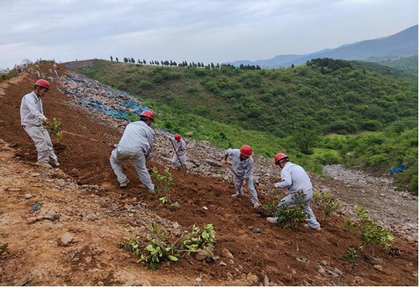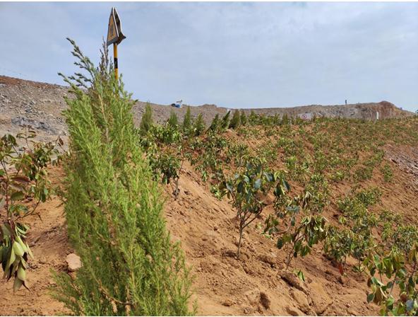 大家弓著身子,腳下踩著礦山新覆蓋的沃土,一層打底,一層加固施肥,植下綠色的希望。站在礦山之巔,望著礦山一片春色,環山而上綠色海洋生機盎然,春風拂過,蕩起微微波瀾,這樣的美色是我們礦山種植者的功勛。回首往日,灰禿禿的一片是我們記憶中對礦山的寫照,而現在綠油油的生機點燃的是建設綠色礦山的星星之火。