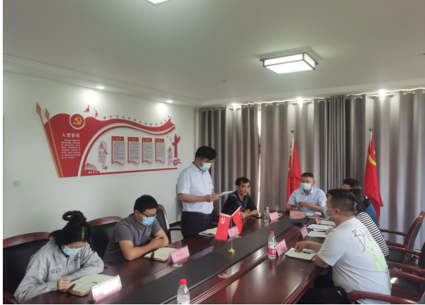 2022年6月10日兗州中材禹州蕭縣黨支部與焦作晉城黨支部在白坪分公司召開預備黨員轉正會議,公司黨委副書記何芳訓、黨群部長李增光、部長助理逯瑞及兩支部黨員參加了會議。