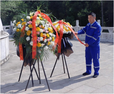 驚雷浮雕、陳獨秀銅像、新青年碑刻......走過柏林墓道,來到陳獨秀先生的墓前,項目執(zhí)行經理張作鋼同志代表公司敬獻花圈,帶領全體黨員和青年同志,懷著無比崇高的敬意,恭敬地向墓碑三鞠躬,用行動表達對先生的敬仰之情。
